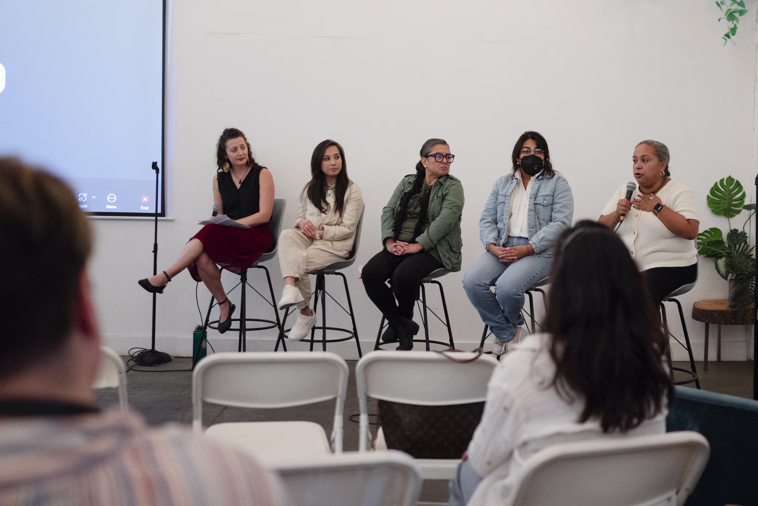 Maria C. Chavez (right), brings her expertise as a Immigration Legal Director to the panel at Daylight San Diego's "A Light on Immigration" event, Friday, November 6, 2025.